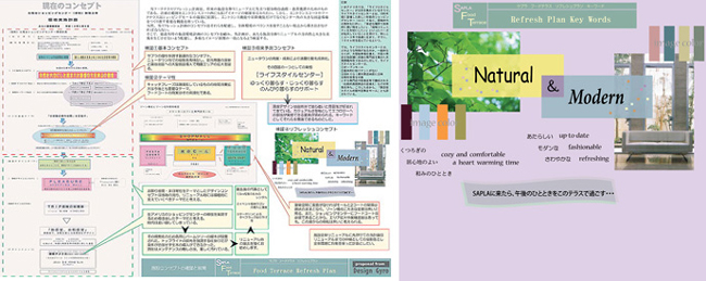 コンセプトの構築を行い対象の個性づくりを図るイメージ・キーワード・モチーフを選定。 コンセプトに基づき、必要客席数・設備・植栽・備品の配置計画を行う。 ![]()
